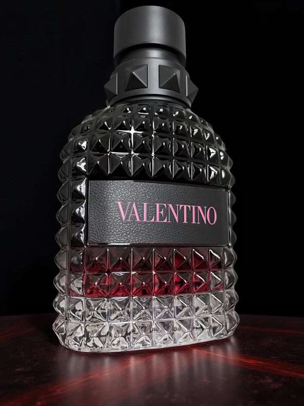 Born in Roma Uomo Intense es una fragancia fougère ambarina dulce lanzada en 2023 que celebra la dualidad "Aristopunk" romana. Su pirámide olfativa combina vainilla bourbon de Madagascar, lavandín intenso y vetiver ahumado haitiano, creando una composición que fusiona elegancia aristocrática con rebeldía contemporánea y captura la efervescencia nocturna de Roma.